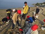 3年生がビーチクリーンで、浜辺のごみ拾いを行いました。みんなで協力してたくさんのごみを拾うことができました。